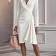 Γυναικείο Retro διασταύρωση V-λαιμό μέση στερεό χρώμα μακριά μανίκι φόρεμα μακριά